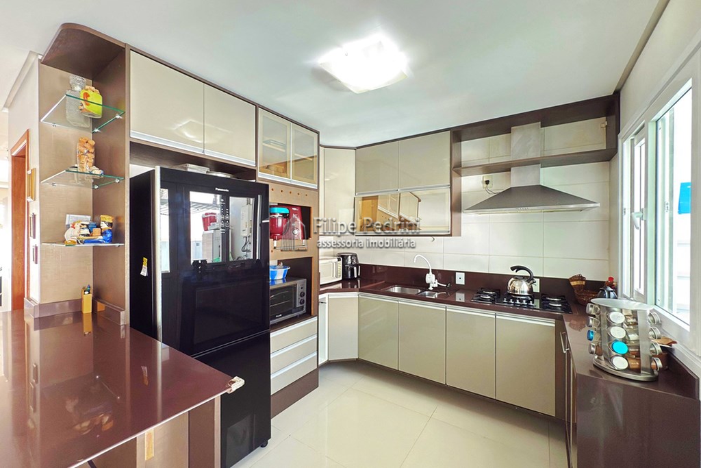 A cozinha conta com móveis sob medida, garantindo praticidade, organização e um acabamento que valoriza o ambiente. A área de serviço é separada e fechada, trazendo mais funcionalidade para a rotina.