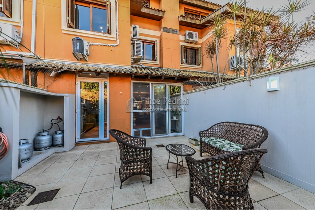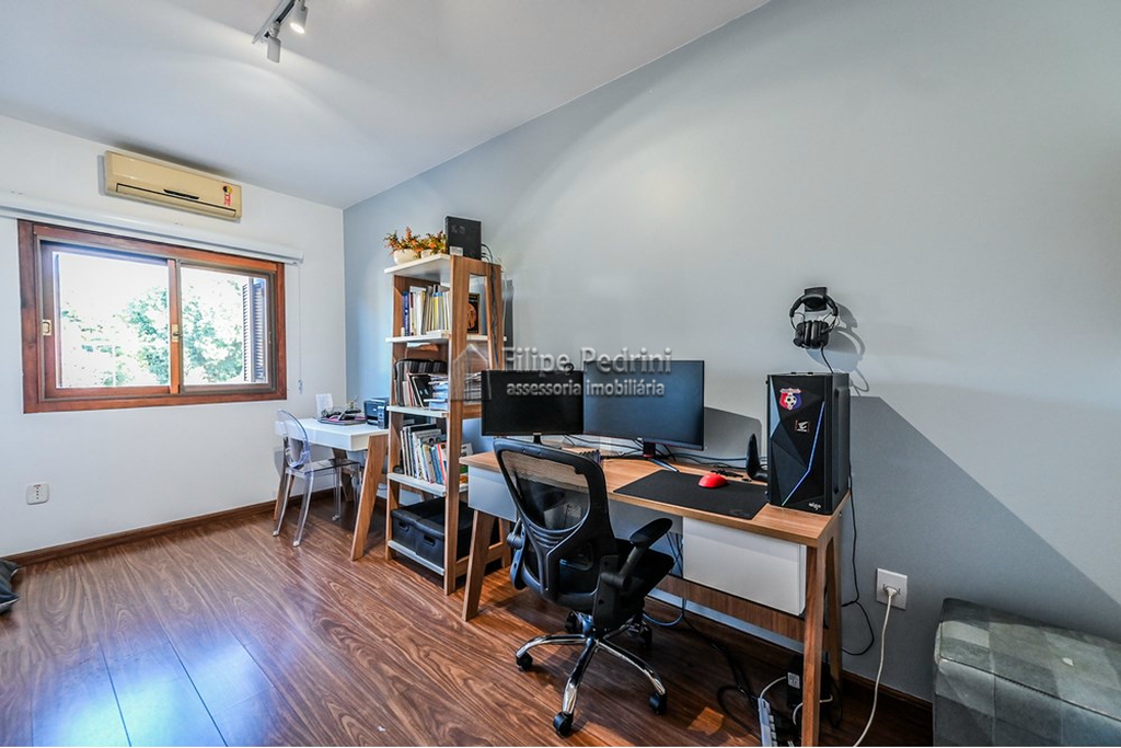 Entre as inúmeras características da propriedade, destacam-se o espaço gourmet com churrasqueira, um quintal com jardim e a possibilidade de ter animais de estimação. A casa também conta com áreas integradas, armário embutidos, cozinha gourmet em conceito aberto com a sala de jantar e estar. Para aqueles que valorizam o conforto, há ar condicionado, e chuveiro a gás., e no terceiro piso temos uma lavanderia equipada, uma sala de tv ou estudos ou mesmo um espaço para home office e um terraço com muito sol para estender as roupas da família ou aquele chimarrão ou bronzeamento no verão.